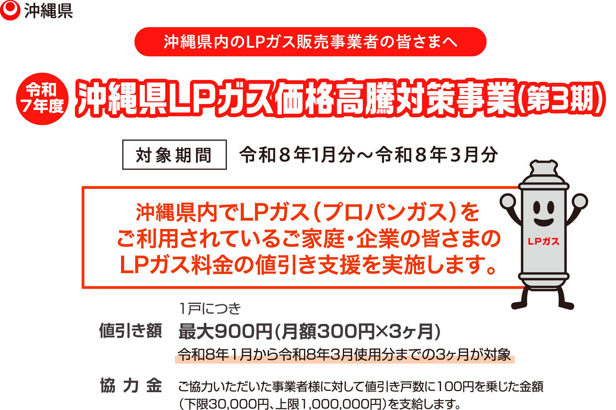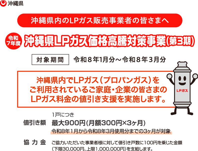 令和8年4月のガス料金ご請求分において値引きの実施をお願いします。 値引き分は実績に応じて県から事業者様へお支払いします。